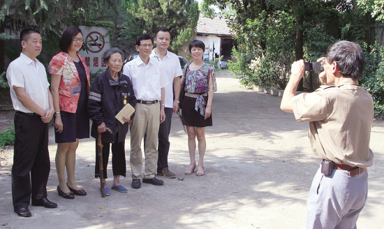 “我要把大家对母亲的关怀拍下来留个纪念!”昨天,在金华市区旌孝街,市政协副主席刘净非、陶国兴率领市委统战部、民革金华市委会、市民政局等相关部门负责人,走访慰问了抗战老兵林希韫,林希韫的儿子陈仲濂用家庭DV为大家合影留念。