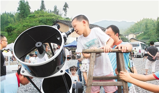杭州天文学会成员董庄勇一边架设专业天文望远镜,一边指着云散后的蓝天说:“这里夜空观星效果绝对好,当黑夜来临,人们可以看到在城市里所看不到的数百颗星体组成的夜空图,还能捕捉到划过天际的流星。”