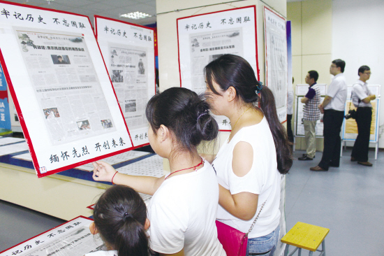 8月23日,雷锋文化馆举办了一场展览,不再是过去经常办的雷锋主题展,而是“纪念中国人民抗战胜利大型图片资料展”,共展出了130多块展板,内容有中国抗战图片、抗战报道,以及二战日本94名战犯的罪行摘录。