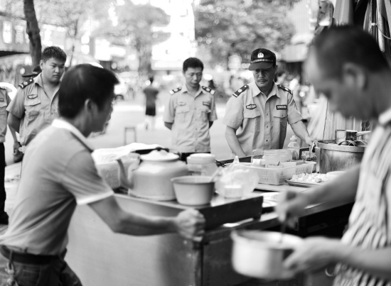 市区高畈街在提档改造后,一些市民表示路面虽然平整了,但是在上下班高峰依然拥堵。8月19日,金华开发区行政执法分局执法人员联合金华开发区江南街道及高畈社区的工作人员,对违规延伸到人行横道的商铺进行集中整治。