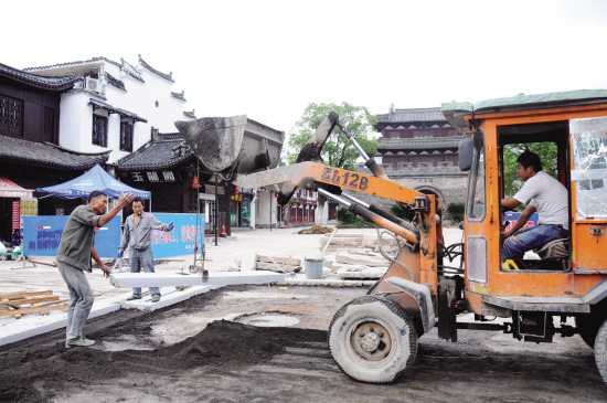 昨天上午,在金华市区古子城保宁门广场上,施工人员在铺砌青石板。 据婺州古城保护提升指挥部工作人员介绍,飘萍路人行道6000多平方米青石块铺砌,已于8月上旬完工;八咏路700米路面、八咏楼前空地青石板铺砌也已完毕,目前,仅剩下保宁门广场最后100多平方米正在进行收尾施工。接下来,将开展休闲座椅、指路指示牌、监控安装和绿化种植等施工。