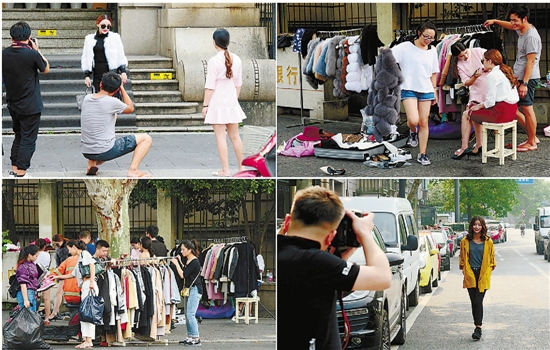 气温还没降,服装电商就开始为换季做准备了。昨天,杭州中山中路工商银行的老房子前成了“淘女郎”走台的“热点”地带。她们换上各色秋装、冬装,由摄影师马不停蹄地跟拍,忙得不亦乐乎。