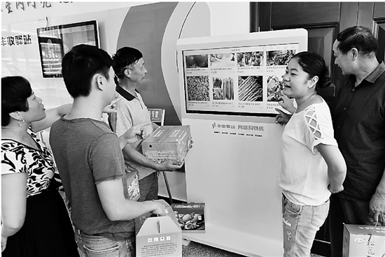 湖州德清县雷甸镇洋北村的丰收驿站里,导购员陈红通过网络购物机为农民提供代买代卖服务。丰收驿站不仅能提供代买代卖和小额费用存储等服务,店内还经营着千余种日用品及食品。同时,当地的鸡蛋、西瓜、甜瓜等土特产也可以通过网络销售到全国各地。
