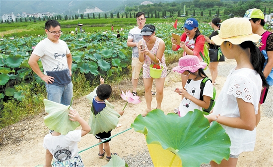 昨日,巍山镇象岗村,市北卡农业发展有限公司集农业生产、水产养殖、休闲观光于一体的500亩生态稻田养鱼示范基地,吸引了义乌、东阳两地的家长带孩子前来参加野炊、莲蓬采摘、稻田抓鱼等活动,体验乡村生活乐趣。