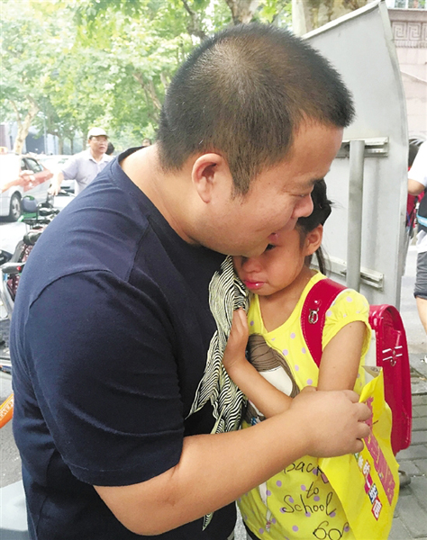 昨天早上7点40分,在杭州天长小学的校门口,很多家长看到一个二年级的小女孩趴在爸爸韩一枫的怀里哭泣,爸爸一边用手帮孩子擦眼泪,一边安慰她“不哭了,不哭了”。