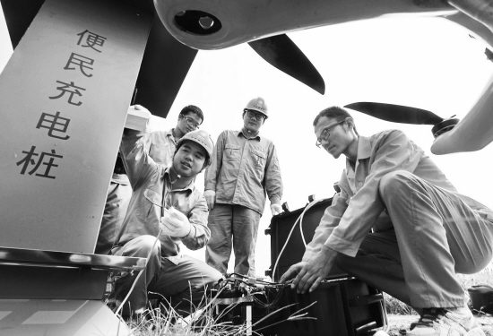 9月5日,在宁波鄞州区古林镇茂新村的农田旁,国家电网宁波市鄞州供电公司员工在对当地种粮大户调试安装便民充电桩,方便治虫遥控无人机充电。随着农业智能化发展,机械化农业设备越来越得到普及和推广。比起传统人工喷洒农药治虫,遥控无人机高效、灵活,极大缩减人力成本。目前,鄞州区共有耕地42万亩,使用无人机后,平均每亩可节省人力4人次。