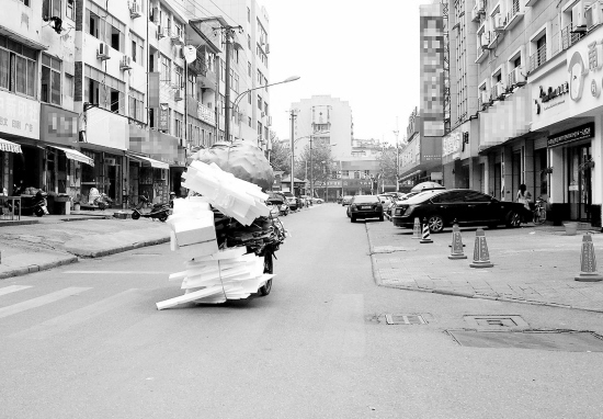 前天,一辆载满废品的三轮车行驶在金华市区南苑街上一名路人表示,在大街小巷遇到超载的三轮车时,不少人离得远远的。一些三轮车闯红灯、逆行等违规行为不少,有安全隐患。