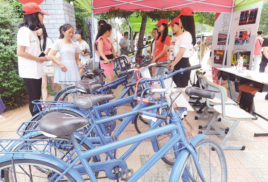 昨天是浙师大开学的日子,该校志愿者总队设立了“师大小蓝”服务点,为上午报到的新生办理免费租借自行车登记手续。据了解,为新生特别准备的自行车有120多辆,由历届毕业生捐赠和校保卫处定期收集的遗弃旧车组成,经过统一挑选、维修,喷上蓝色油漆、编号,免费租借给有需要的新生。
