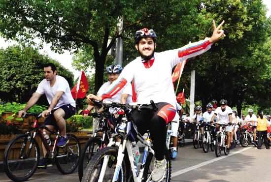 昨天上午,由义乌市文明办、义乌市学雷锋公益协会、义乌世界商人之家联合主办的“低碳生活文明出行”自行车骑行活动在市民广场拉开帷幕,共100余人参与此次骑行,其中一半以上是外籍人士。