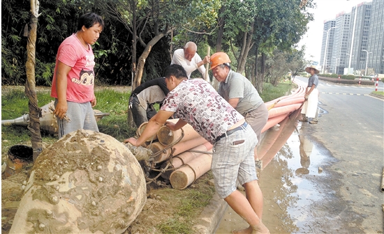 9日,在广福东街北侧的非机动车道上,四五名工人正在铺设高压电缆套管。与在路面“开膛剖肚”埋管的传统方法不同,施工方采用顶管工艺施工,不需开挖路面。施工时,每隔三四百米打一个工作井,然后利用钻机在地下钻孔,把待铺管线拉入钻孔内即可。装有探头的钻机可深入地下五至六米,以避开地下错综复杂的管线。非开挖施工工艺有效避免了管线铺设对城市建筑物的破坏和对道路交通的堵塞等问题。