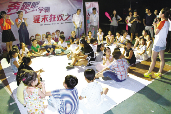日前,市东翼教育学校、德一美术培训中心在婺城区城西街道中山路社区时代花园篮球场,举办奔跑吧———师生们联谊学霸夏末狂欢夜活动。百名学生代表分批排列队形传递手托乒乓球接力赛、坐在地毯上制作各种各样的艺术品,进行爱国主义教育……载歌载舞,热闹非凡。