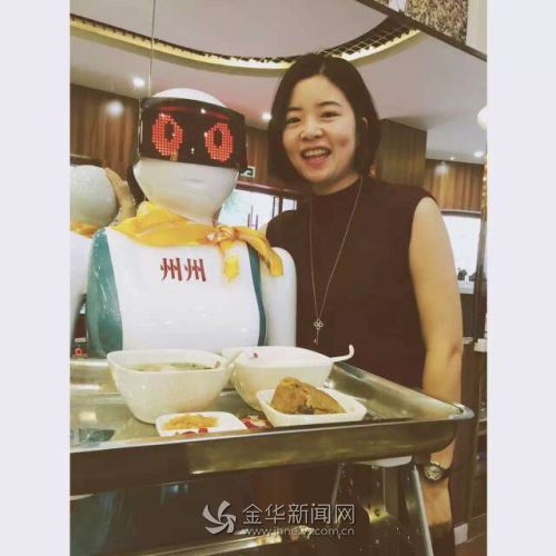 今天中午,在一家名为“品丽州”店里,两个穿梭在大堂内的红、蓝色身影始终吸引着食客的注意。这是该店新加入的两位特殊服务员。每次上菜,到了客人桌边一动不动、还要客人从自己手上接菜的她,却特别招顾客的喜欢,在“她”上菜时,还常常有人和她合影。