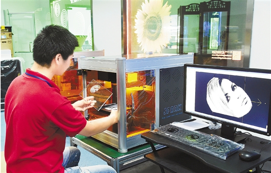 近日,位于萧山区的杭州先临三维科技股份有限公司车间,技术人员正在出厂前检测一台自主开发的智能化三维激光内雕机在玻璃上雕饰图案。该公司作为国家火炬计划高新技术企业,坚持科技创新,每年投入经费2000多万元,用于研发3D打印机、激光加工技术等领域新产品,以抢占市场制高点。目前企业拥有专利技术超过100项,产品远销欧美等30多个国家和地区。