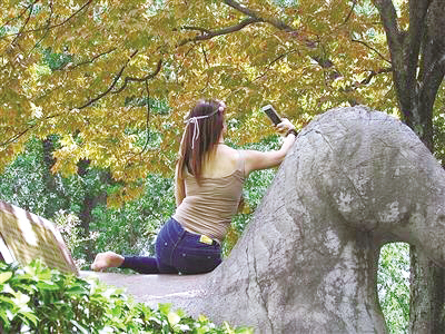 近日,徐先生在南京中山陵风景区明孝陵石象路上,发现一位美女骑在文物上玩自拍,不停地变换姿势,忽而坐着、忽而仰躺着,持续近5分钟,觉得十分不雅。