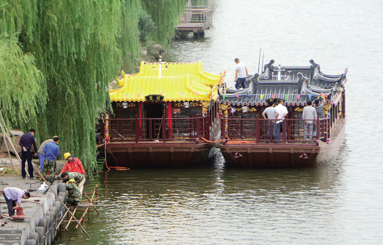 这两艘画舫分别命名为“双龙”、“双溪”,长18米、宽4.5米,每艘船有50个座位,不久将投入使用。