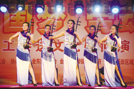 9月22日晚,省总工会“下基层,送文化”慰问演出,来到了金东区孝顺镇低田村,浙江歌剧院的演员们,为到场观看的2000多名附近企业职工和居民,演出了歌舞《相逢中国梦》、四重唱《咱们工人有力量》、小品《宝马》、二胡独奏《水乡小唱》等15个文艺节目,精彩的表演赢得观众阵阵喝彩。