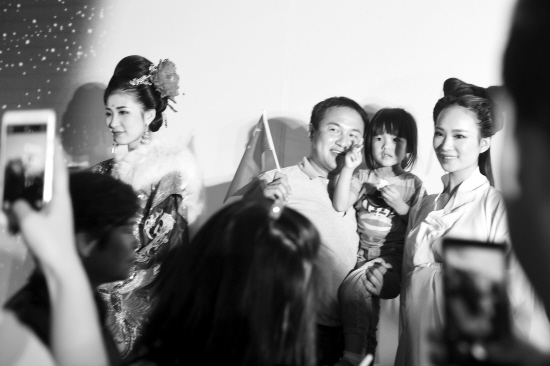 上周六晚,金华西市街上来了一群身着古装的美女,她们站在印有月亮的展板前,不少市民上前与她们合影。一位市民笑着喊:“快来和神仙姐姐拍照!”