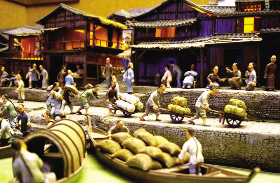 昨天,金华市博物馆正式开馆,不少市民赶来参观。一位兰溪籍的李大爷在“八婺古韵”展厅指着《繁华的兰溪商埠》展台上的场景对老伴说:“你看,以前的兰溪商埠真热闹。”