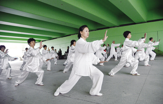 昨天,金华市武术协会杨式太极拳研究会太极拳剑交流大会在市区假日公园对面的丹溪大桥下举行,来自金华及各县、市、区等地的300多名太极拳爱好者聚在一起,切磋武艺。据了解,该交流会每年举办一次,从开办以来,已有30多年。