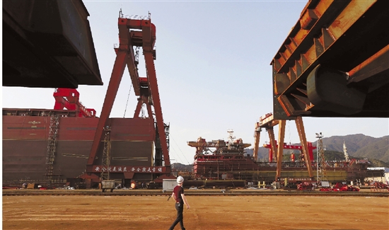 位于临海市涌泉镇枫叶船舶修造有限公司厂区内,焊花飞溅、一派忙碌。随着渔船环保要求的提高,许多老旧船只面临淘汰,这给当地造船业带来新商机。