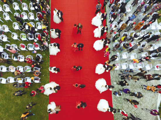 当天,兰溪市举行“情定兰江畔向幸福出发”公益集体婚礼,在中洲公园,共17对夫妻携手迈进礼堂,其中,5对是老夫妻,12对为新婚夫妻。