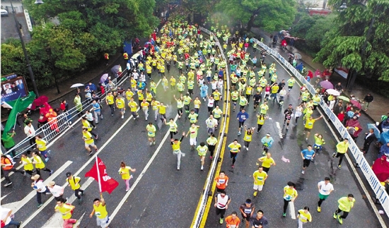 11月1日上午8时,“2015杭州马拉松”在雨中鸣枪开跑。来自45个国家和地区的3万余名路跑爱好者,在风景如画的赛道上快乐奔跑。