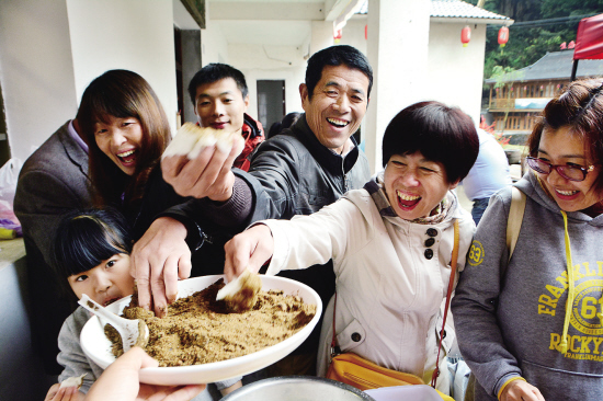 昨天上午,虽然天下着雨,但在婺城区箬阳乡琴坛村,游客还是络绎不绝,9家农家乐业主忙碌不停,烧农家菜,打麻糍,摘猕猴桃,让游客们过足乡村瘾。当天,婺城区农办组织了90多位来自各县市的游客到琴坛村一日游。