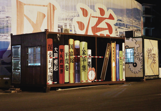 《金华集》、《探索与发现》、《大国崛起》……昨晚,经过金华火车站北站房附近时,看到路边有个大型的“书架”,仔细一看,原来是个集装箱。有路人说,集装箱经过美化后,焕然一新。
