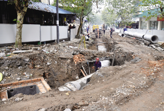 昨天,在金华市区通济街(西市街-婺江东路)雨污合流道路改造工程现场,工人们忙碌着施工。据了解,上世纪80年代以前,小码头这一带是金华最繁华的地方。在之后的时间里,小码头也经历过冷清的阶段。随着社会的发展,居民生活质量的提高,这一带的部分硬件设施急盼改造。此次改造工程将附近的雨水和污水进行分流,分流后,污水将进入污水处理池进行集中处理。目前,工人们正紧锣密鼓地加班加点施工,力争在12月底前完成,尽快让路面恢复通行。