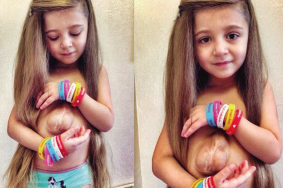 据国外媒体报道,来自俄罗斯的6岁小女孩Virsaviya Borun,心脏天生长在胸腔外面,约为一个拳头的大小,仅有一层皮肤的保护。