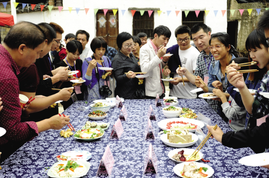 11月8日,由武义县旅委、三港乡政府主办的首届“豆腐节”在山清水秀的“油豆腐之乡”曳坑村开幕。本届“豆腐节”的主题是“品豆腐美食、走最美古道”,游客们一边观看戏剧《王小二磨豆腐》等精彩的文艺演出,一边还可品尝各式各样的豆腐菜肴。喜欢户外运动的游客还可以徒步登上曳岭古道,欣赏古道两旁美丽乡村风光。据统计,当天曳坑村村民就卖出了5000多斤油豆腐,其他的诸如宣平咸菜、曳坑黑木耳等农特产品也颇受游客欢迎。
