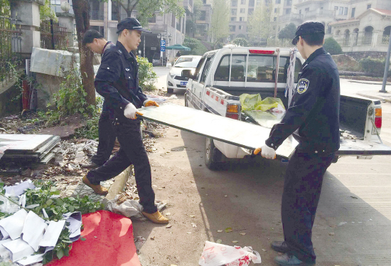 在集中清理前,执法队员对周围单位、市民走访调查,尽可能寻找到当事人,对找不到物主的占道物,在周边张贴限期整改通知书或在媒体上发布公告要求限期清理。