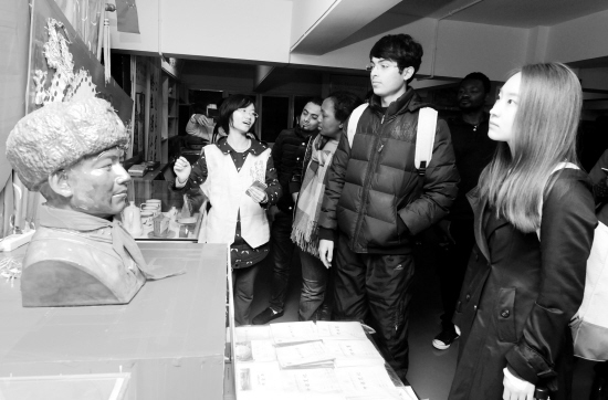 昨天上午,浙师大国际学院汉语商务2013班来自埃及、也门、刚果、韩国、泰国等10多个国家的26名留学生到市区雷锋文化馆参观,听志愿者讲解,抄写雷锋日记,在留言卡片上写下了参观感受。雷锋文化馆负责人曹荣安给留学生们宣讲了“信义”金华有关内容。