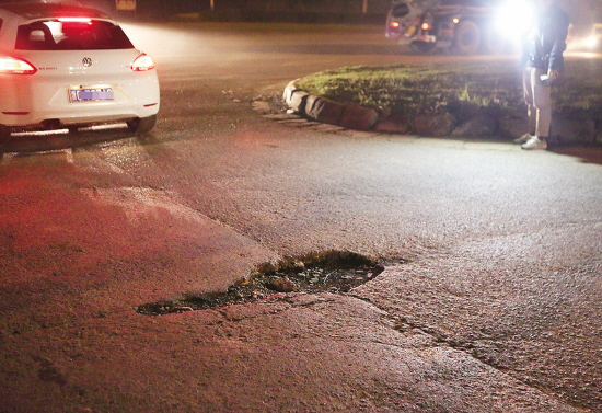 “我们村口的路实在太差了,连着就有两个大坑,昨天晚上有三辆车在这里爆胎了。”昨天晚上7点多,本报新闻热线82374110接到了家住金华开发区苏孟乡合山头村村民的电话反映。他们告诉记者,从村里通往二环南路的路口处有两个落差比较大的坑洞。司机如果不小心,很容易发生事故。