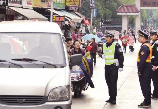 昨天,婺城区运管所与交警、城管等部门联合对浙师大北门周边交通环境开展专项整治,盘查出可疑车辆20余辆。
