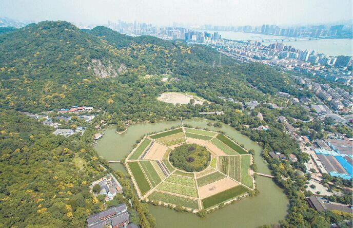 空中俯瞰美丽的杭州八卦田(2015年9月8日摄)。