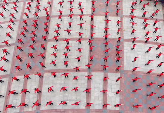 近日,武义县500多名大妈在滨江广场,穿着统一的“中国红”服装,伴随着音乐有节奏地跳起广场舞。当日,在杭州、宁波、温州、金华、丽水的80多个地点,万余名广场舞爱好者同时起舞。舞者整齐的步伐,优美的舞姿,跳出青春的靓丽,跳出幸福生活。
