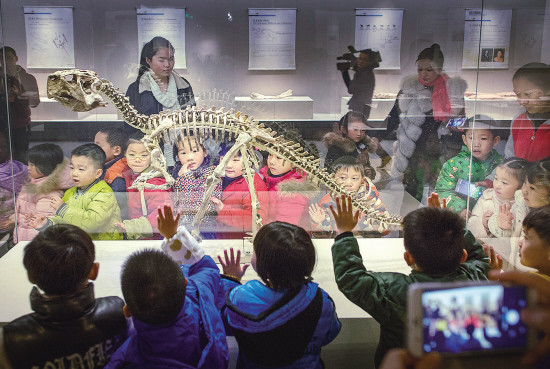 昨日,由市博物馆、浙江自然博物馆主办的“龙行浙江”———浙江出土恐龙化石展在金华市博物馆开展。小朋友被高大的恐龙骨架化石和有趣的恐龙光电动画互动游戏所吸引。