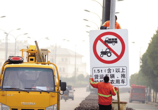 昨天,市区金瓯路与康济街交叉口,交通部门施工人员在安装1.5吨(含)以上大货车禁行标志牌,以进一步优化完善周边道路交通指引系统。本月,交通部门在市区主干道路口增设了60多块交通标志牌。