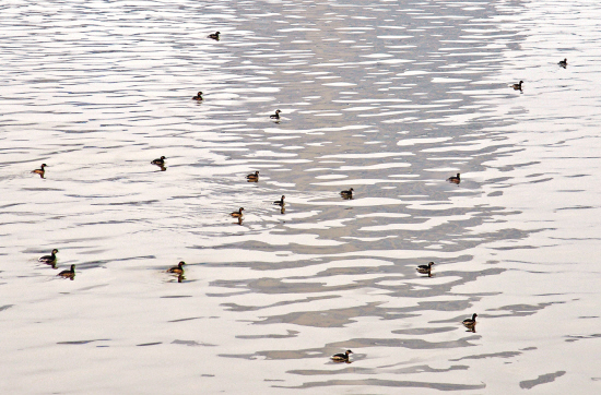 昨天,在东阳城区东阳江橡皮坝附近,远远望去水面上有许多小黑点,走近才看清是一些比麻雀大不了多少的水鸟。别看个子不大,但功夫了得,只见它们不时潜入水中,一会儿又从几米远的水面冒出来。