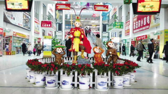 元旦来临之际,金华农贸市场内装饰一新,四组大红灯笼高挂市场中庭,进门大厅一组猴年主题展台憨态可掬。整个市场环境整洁,面貌一新。不仅如此,市场负责人表示,农贸市场商户已经备足货源,确保元旦期间物丰价稳,为广大市民提供优质的服务。
