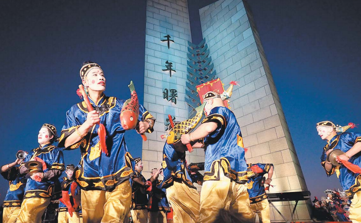 1月1日,浙江温岭市石塘镇渔民以传统的“大奏鼓”形式,迎接2016年第一缕阳光。