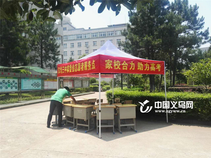 在周密的高考备考工作中,许多学校还有这样一支特殊队伍,从交通秩序维护、学校食堂检查到考场清场、医疗服务,在接下来几天紧张的考试过程中,每个环节都将看到他们的身影。这支队伍就是“家长护考队”,在义乌中学,48名家长委员会成员组成了今年的护考队,抛下工作,这几天他们把自己当做“考生”,不仅为自己的孩子也为广大考生搭起了防护墙,确保考试顺利进行,考生能发挥出水平。